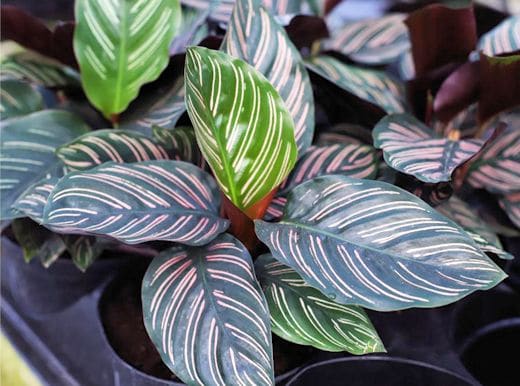 This new variety has golden-chartreuse leaves with white and ruby red veins.